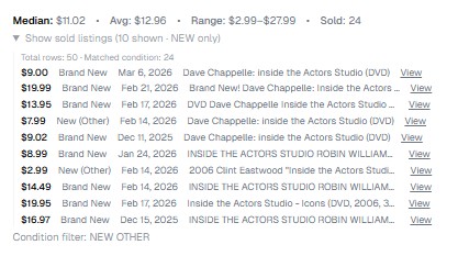 See median, mean, count from eBay sold listings